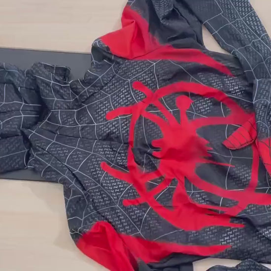 Black Miles Spider Costume: Full Bodysuit with Removable Mask